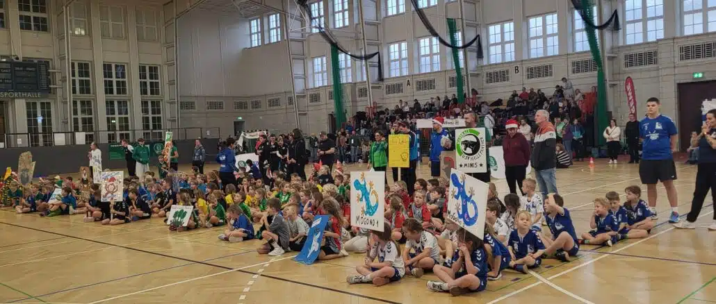 am 06.12.2025 Am vergangenen Wochenende fand das alljährliche Nikolausturnier beim SC DHfK statt, bei dem auch zwei Teams von MoGoNo Leipzig antraten. Unter dem Namen „Gohliser Geckos“ stellten sich unsere jungen Handballerinnen und Handballer der Herausforderung. Trotz einiger krankheitsbedingter Ausfälle, die die Teams ziemlich unterbesetzt ließen, zeigten alle Spielerinnen und Spieler einen unglaublichen Kampfgeist. Jedes Kind gab sein Bestes und kämpfte um jeden Ball – eine wirklich beeindruckende Leistung! Als Belohnung für ihren Einsatz und ihre Leidenschaft erhielten alle Gohliser Geckos das begehrte Handball-Abzeichen. **Zusätzlich gab es vom Nikolaus noch kleine Geschenke, die für große Freude sorgten. Ein weiteres Highlight des Tages war die Möglichkeit, ein Autogramm von Bundesliga-Star Simon Ernst zu ergattern, Mit über 1000 Zuschauern in der Halle war die Stimmung fantastisch und machte diesen Tag zu einem unvergesslichen Erlebnis für die Kinder.